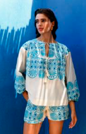 Kaftán DUNAS ORYX Azul Cielo con detalle Negro