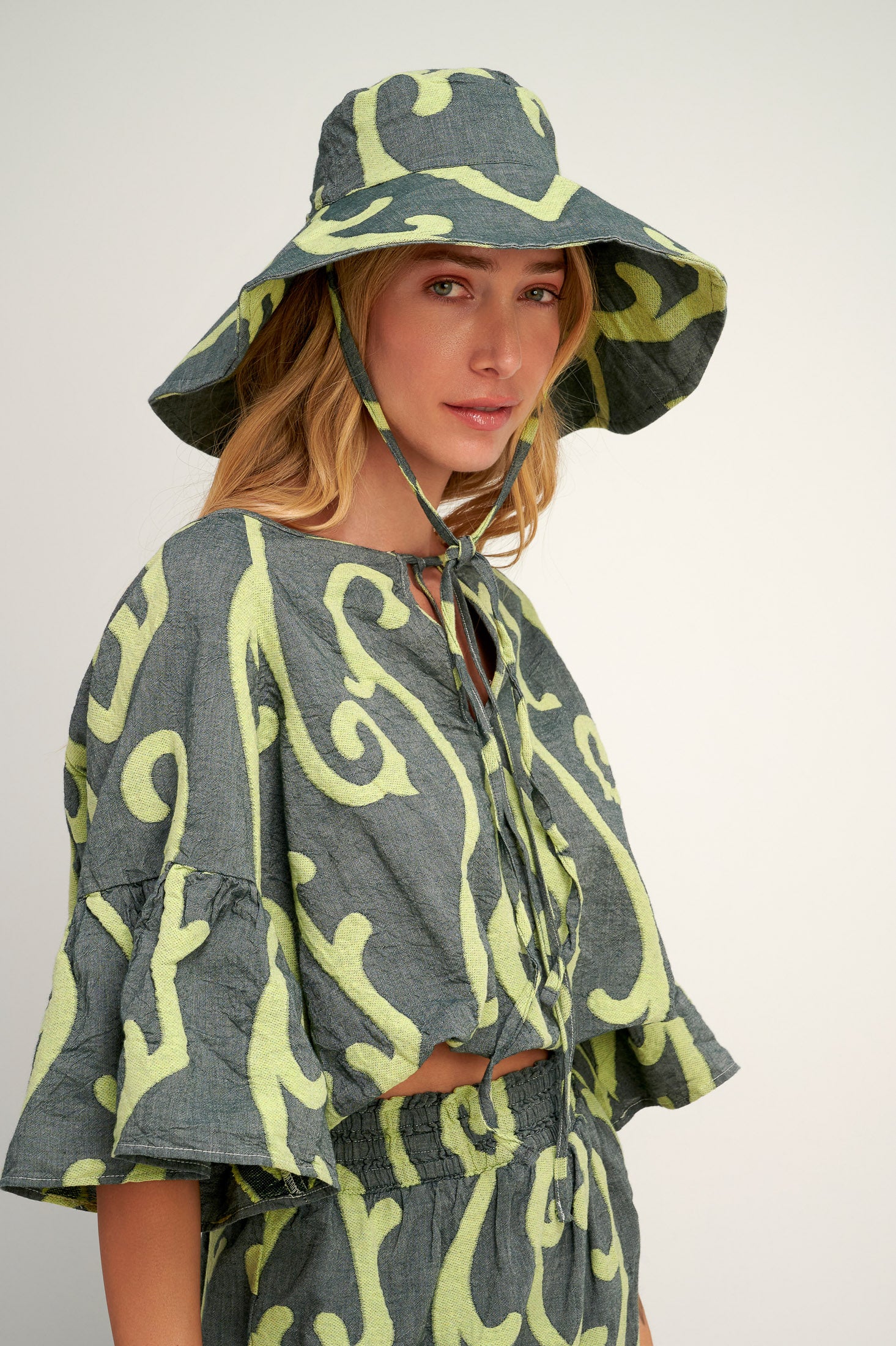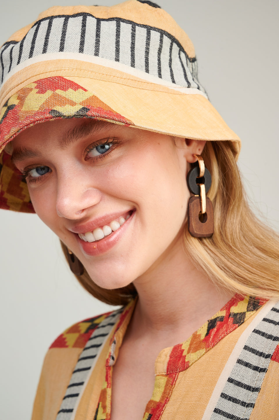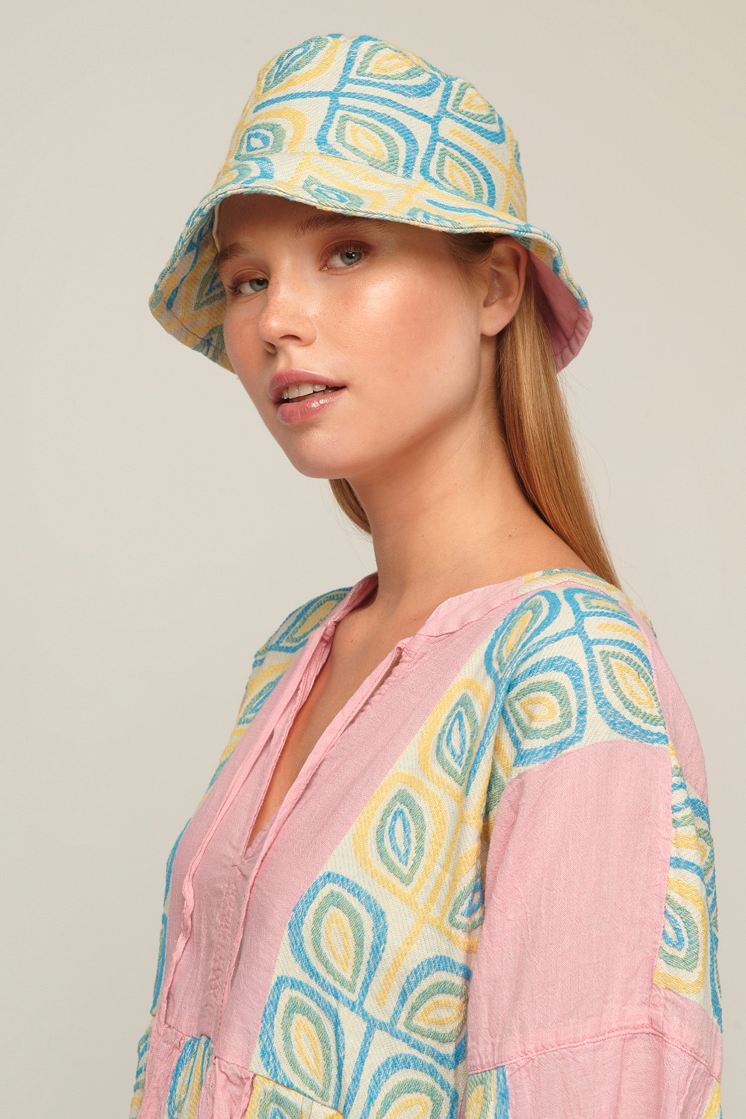 Equadorian palm hats hand painted by artisans in Tulum, Mexico.