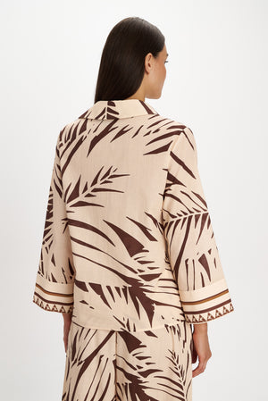 Beautiful patterns adorn this button down, collared shirt. With wide long sleeves that fall at the wrists. Pair with its stunning matching pants.