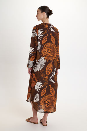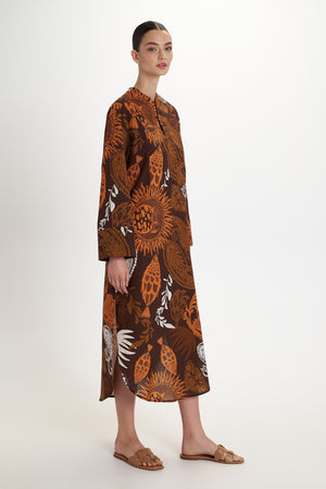 A cropped maxi dress that reflects elegance and style. With its beautiful embroidered patterns. Flattering narrow-sharp V neckline, long wide sleeves that fall below wrist and sided slits.